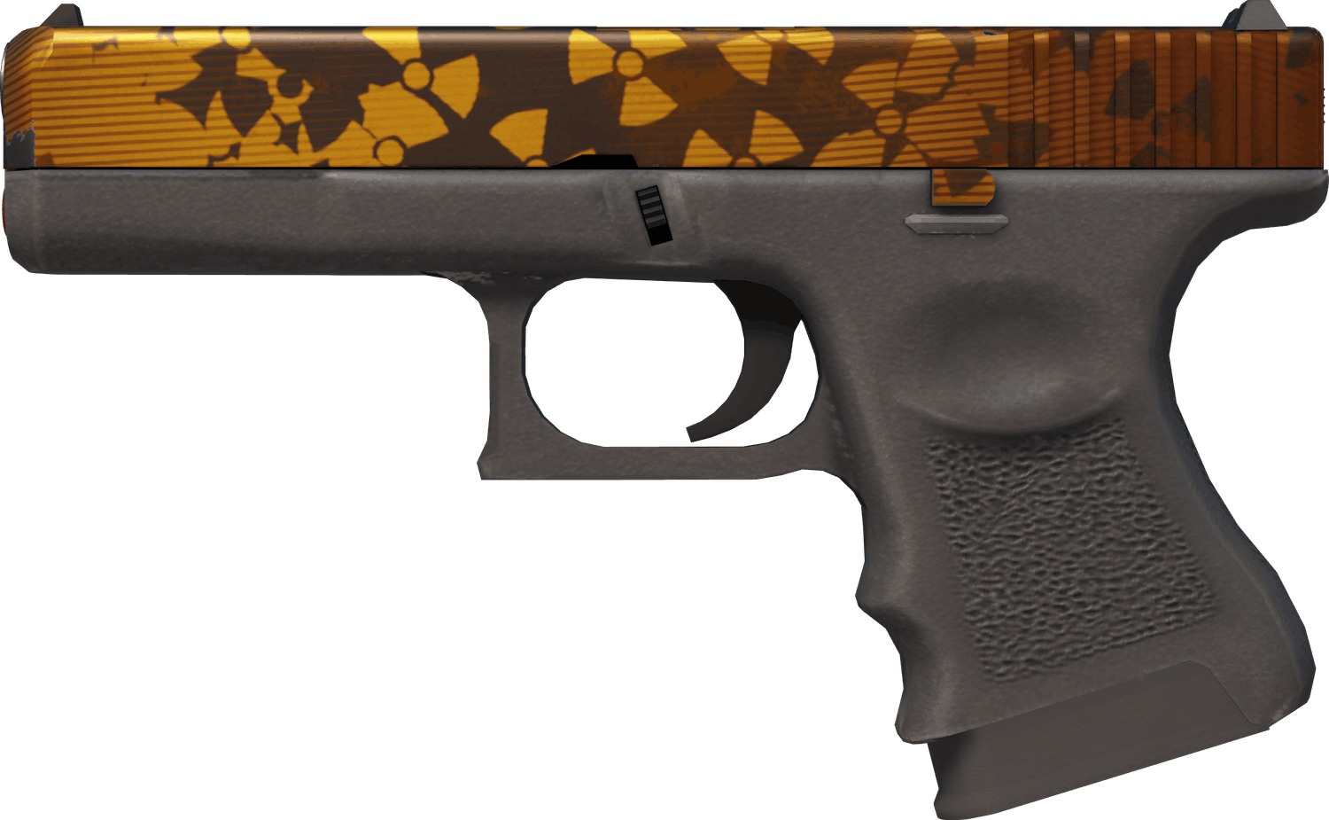 Next up, we have the Reactor Glock-18, a weapon that’s subtle in its theme but still manages to make a strong impression. The lower half of the pistol retains a simple black look, but the barrel is orange and littered with radioactive symbols. Two-tone designs are always clean, and the Reactor skin is no exception. A good skin if you like your skins looking clean and simple.