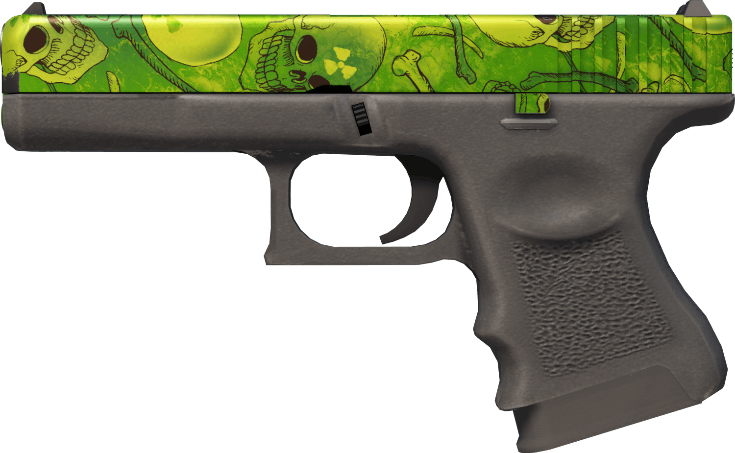 Bright green is the theme here, and the Nuclear Garden Glock-18 fits the bill well. While the bottom portion of the pistol is kept basic in black, the top portion features grotesque imagery of skulls floating in what seems to be radioactive nuclear fluid. Contrasting the imagery with black was a smart decision, as it keeps the design from being too bright, and it easily earns a spot on the list.