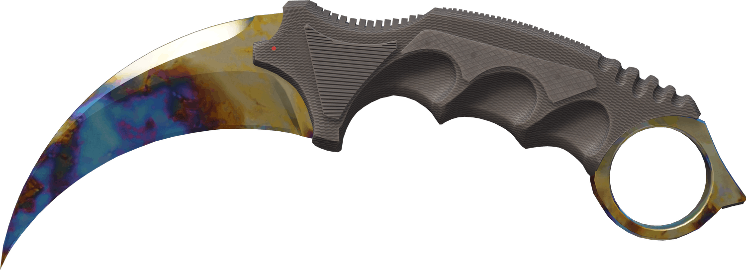 In layman’s terms, the Case Hardened Karambit features two primary colors on both its play side and back side - Gold and Blue. Any variation of this skin that is predominantly blue on the visible side is referred to as the ‘Blue Gem’. Likewise, a Karambit Case Hardened that’s predominantly gold on the play side is referred to as the Gold Gem, but they aren’t nearly as valuable as the former.