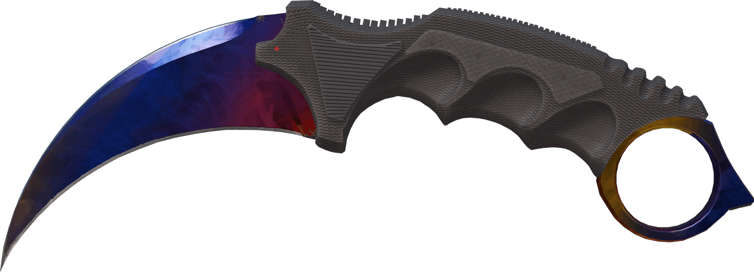 The ‘Fire & Ice’ Karambits are Marble Fade patterns that are entirely (or almost entirely) covered in red and blue, without any yellow inclusions. There are also several ‘Fake Fire & Ice’ patterns that are predominantly covered in red and blue but have noticeable amounts of yellow on their tip.