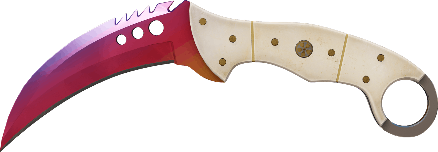 The Talon Knife Fade is one of the few knives which has the complete blade covered with the Fade colors in all 1,000 variations of the seed pattern. Another unique characteristic is that on most other knives with a Fade finish in CS2, the three main colors of the Fade pattern change from the tip of the knife to its hand-guard, that is, horizontally.