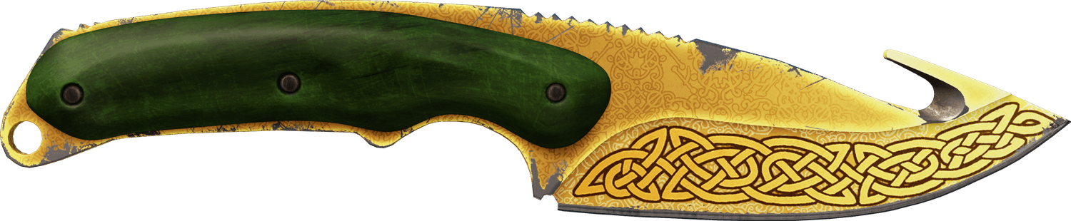 The Lore Gut Knife is different from most of the more savage-looking weapons on this list. Instead of looking gorier, it’s instead a pretty weapon, featuring gold trims and an intricate design going all around the edge of the knife’s blade. A nice dark green hilt comes together to finish the look, making for a phenomenal knife skin that’s equal parts elegant and sophisticated.