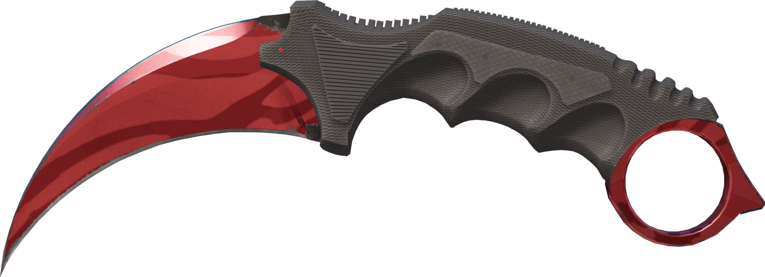 Now we have the Slaughter Karambit, with a stunning mix of red hues on its blade that results in an incredibly striking weapon. The pattern of lighter and darker reds on the Slaughter Karambit make it look vicious, but also contribute towards making it look oddly futuristic. It’s almost like a cybernetic laser weapon from some angles! Pair that with a black handle, and you’ve got a winner of skin.