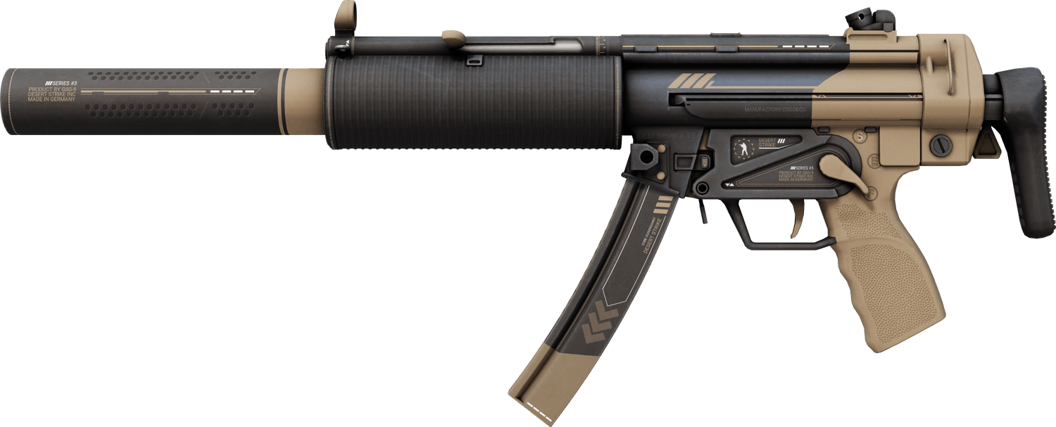 The Desert Strike MP5-SD is a smooth and stealthy way to have yourself dropping consistent bodies across the map. This skin is custom painted with a high-tech look in tan and black. The customized look makes it distinct from every other MP5 skin in a pretty cool way. The full range of colors complement each other for a totally destructive package. When the Desert Strike is in your hands, nothing should stand in your way. The power fantasy from this skin is unmatched.