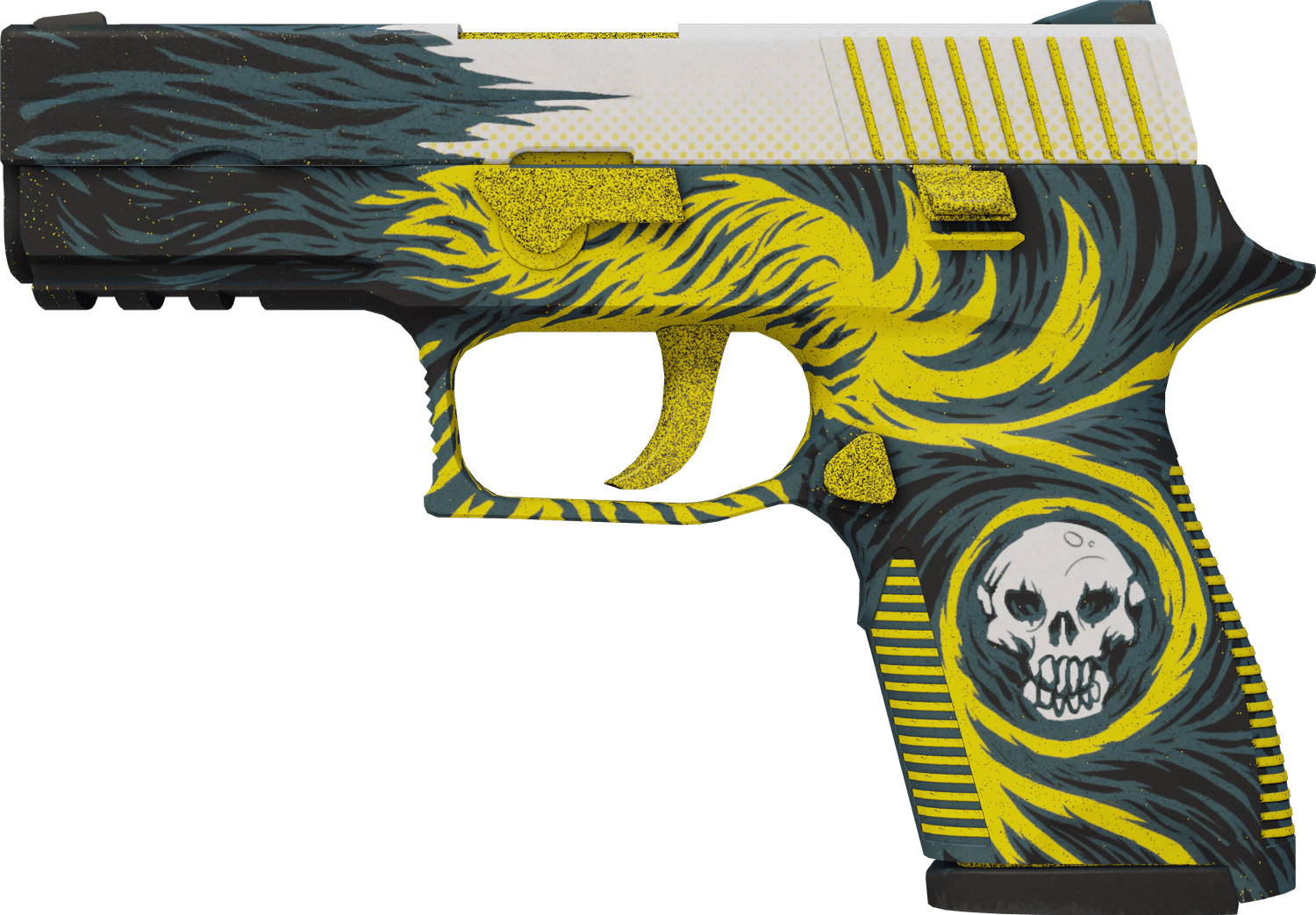 This P250 skin was created by the community designer SLIMEface and has a yellow and gray design to it. It’s definitely one of the more unique skins available for this pistol, although that doesn’t mean it isn’t as good as any other skin out there!