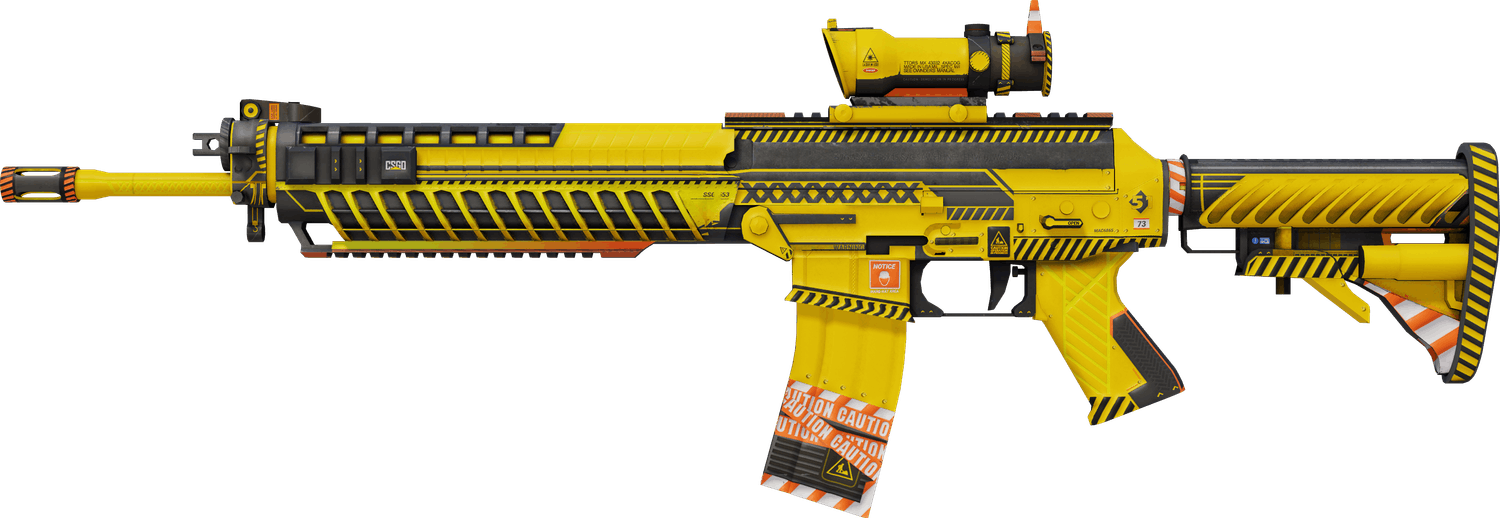 The Hazard Pay skin with the Factory New condition is by far the most gorgeous skin for the SG 553. It’s a glorious gold color, with a completely untouched exterior that just looks pleasing to the eye. This skin covers the whole weapon too, including the magazine, scope and even the muzzle. This is definitely an expensive skin, but we think that it’s well worth the price!