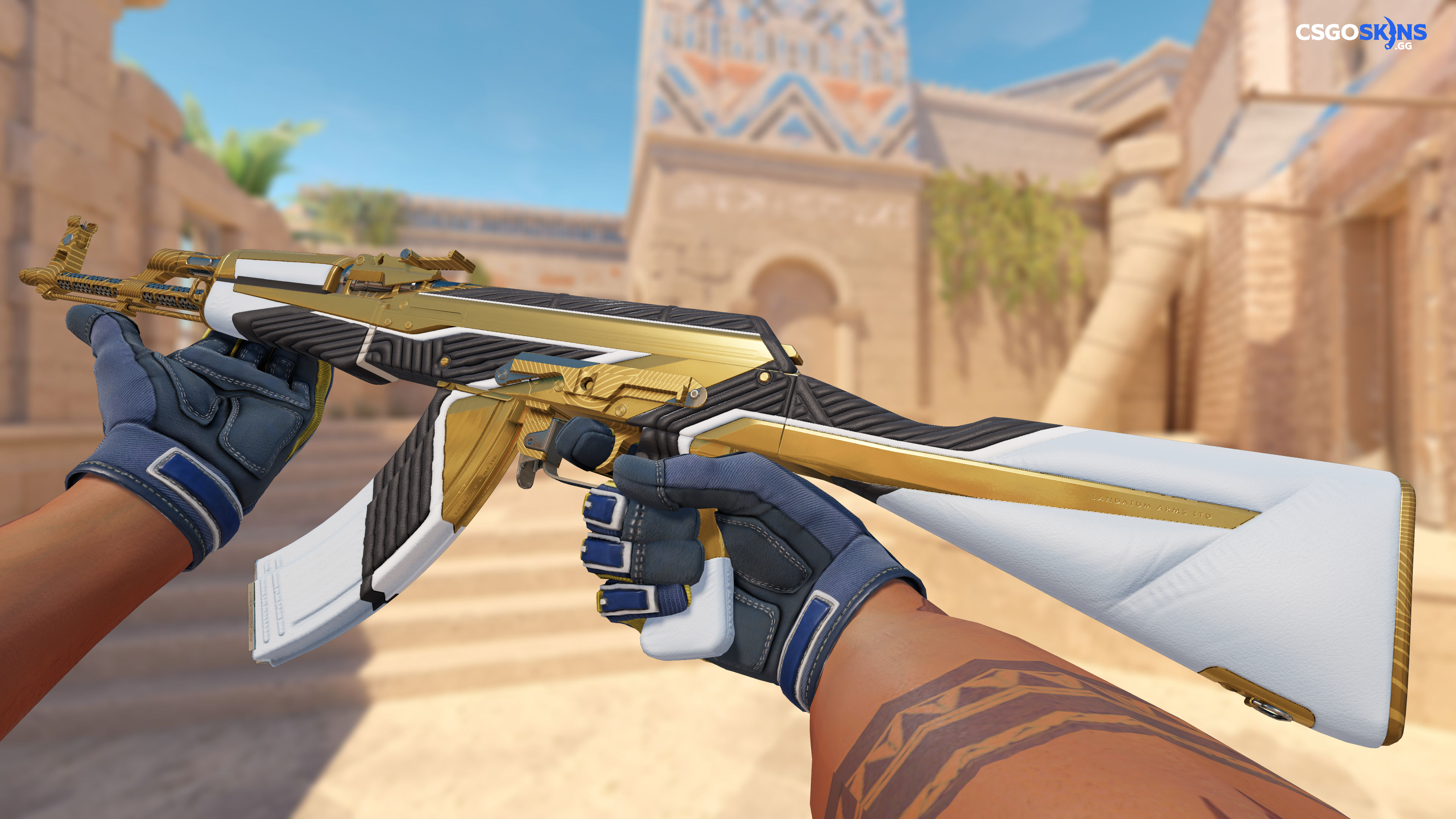 Powerful and reliable, the AK-47 is one of the most popular assault rifles in the world. It is most deadly in short, controlled bursts of fire. It has been custom painted to replicate the look and feel of a luxury white and black puffer jacket and finished with gold accents. Seek power, gain power, hold power