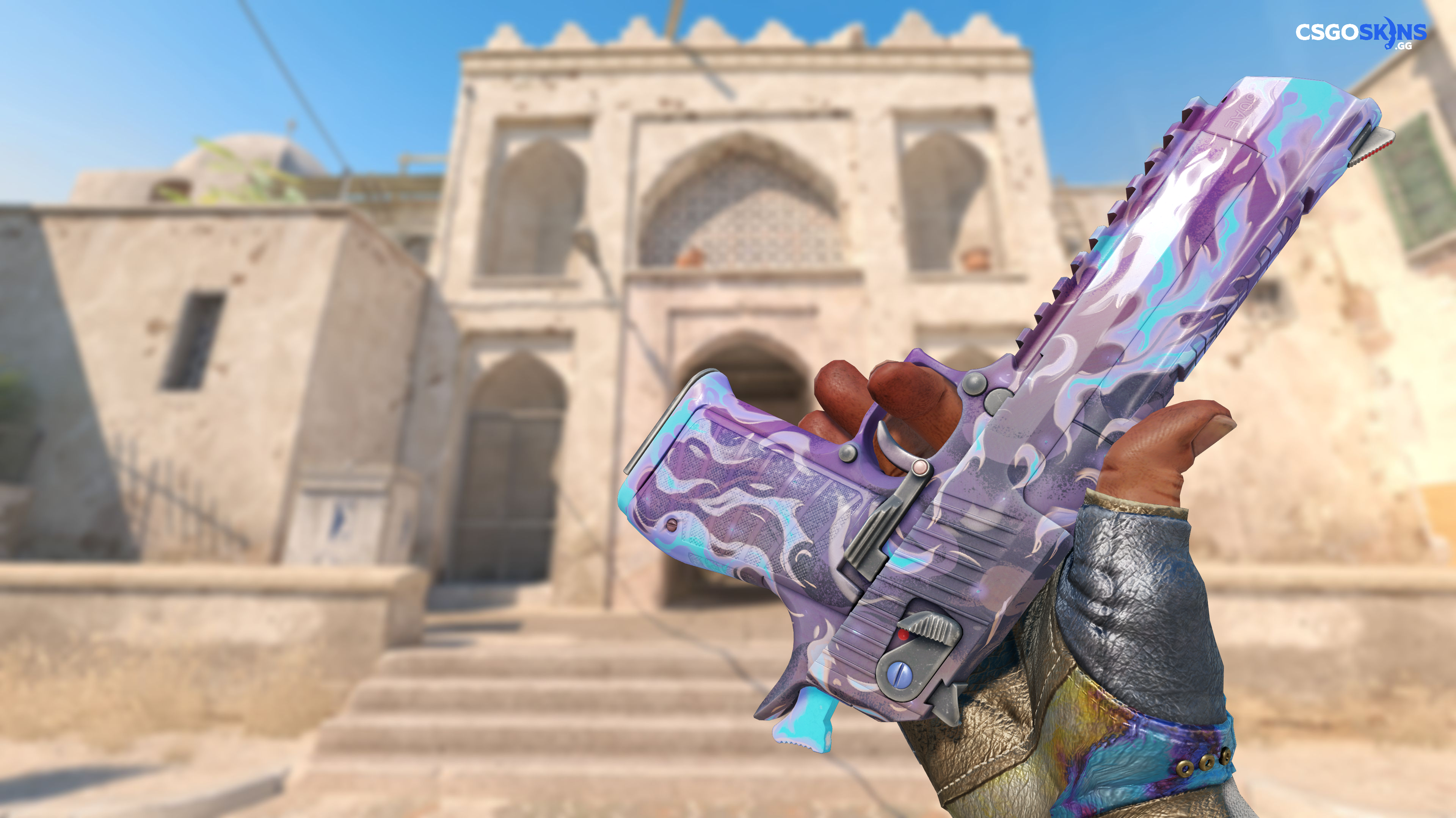 This Desert Eagle has been painted in a "Gunsmith" style, with the Firebreathing finish. This style uses a combination of patina and custom paint styles. The skin has been painted in a color scheme of purple and pink. Different pattern indexes have no effect on the Firebreathing finish. The skin uses the new CS2 model.
