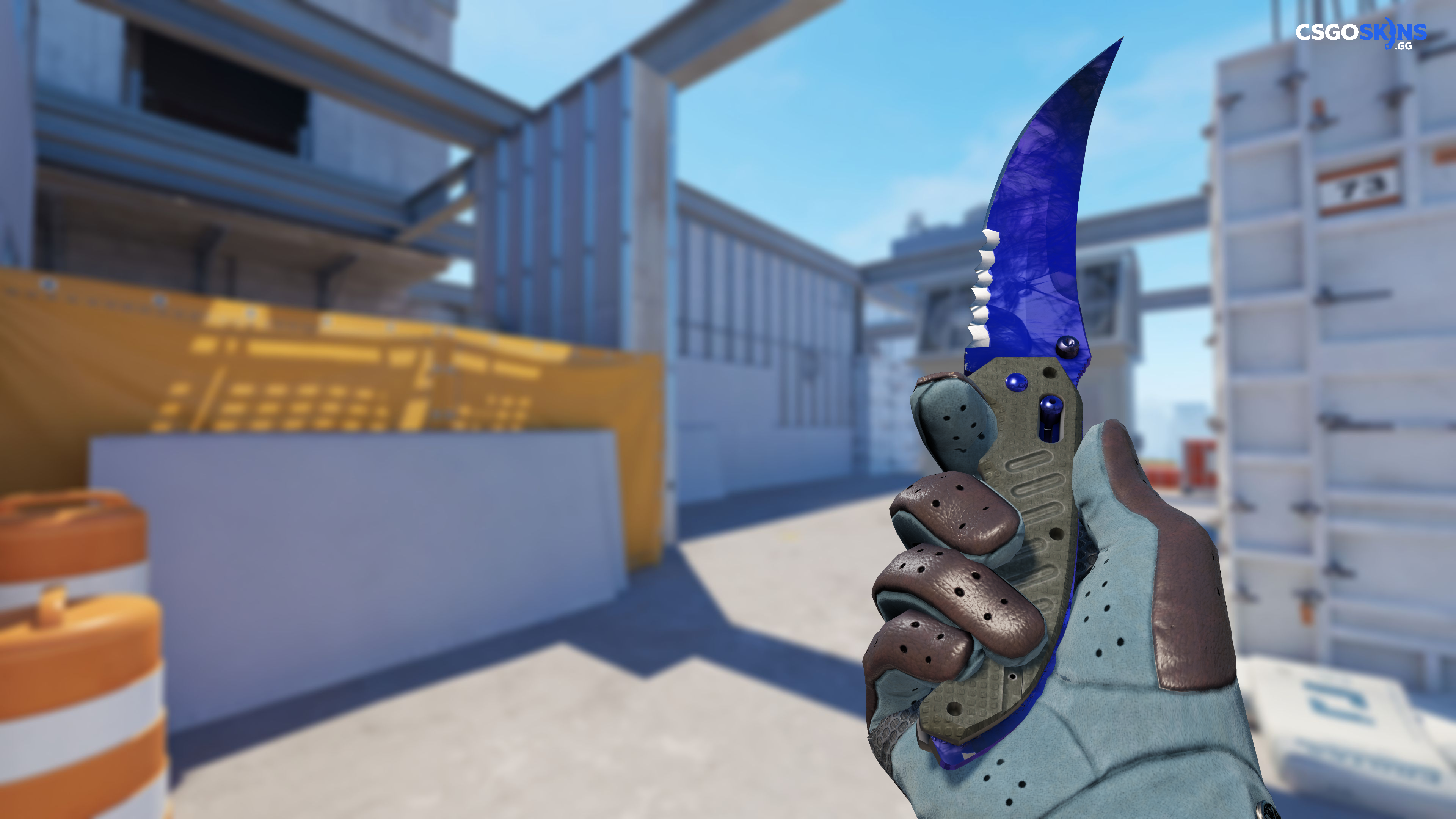 This Flip Knife has been painted in a "Anodized Multicolored" style, with the Doppler Phase 4 finish. In this style, the candy coat may be applied in a multicolored pattern. In the real world, methods could include silk-screening or adherable stencils. The primary color of this skin is composed of a blue tint. The look of the Doppler Phase 4 finish is affected by its pattern index. The skin uses the new CS2 model.