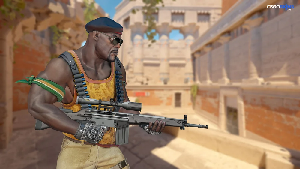 The pricy G3SG1 lowers movement speed considerably but compensates with a higher rate of fire than other sniper rifles. It has been given an elegant black and chrome paintjob and a custom rubber stock. Don't worry Naomi, I'll make Felix pay - Mikha Biton, Phoenix Sniper