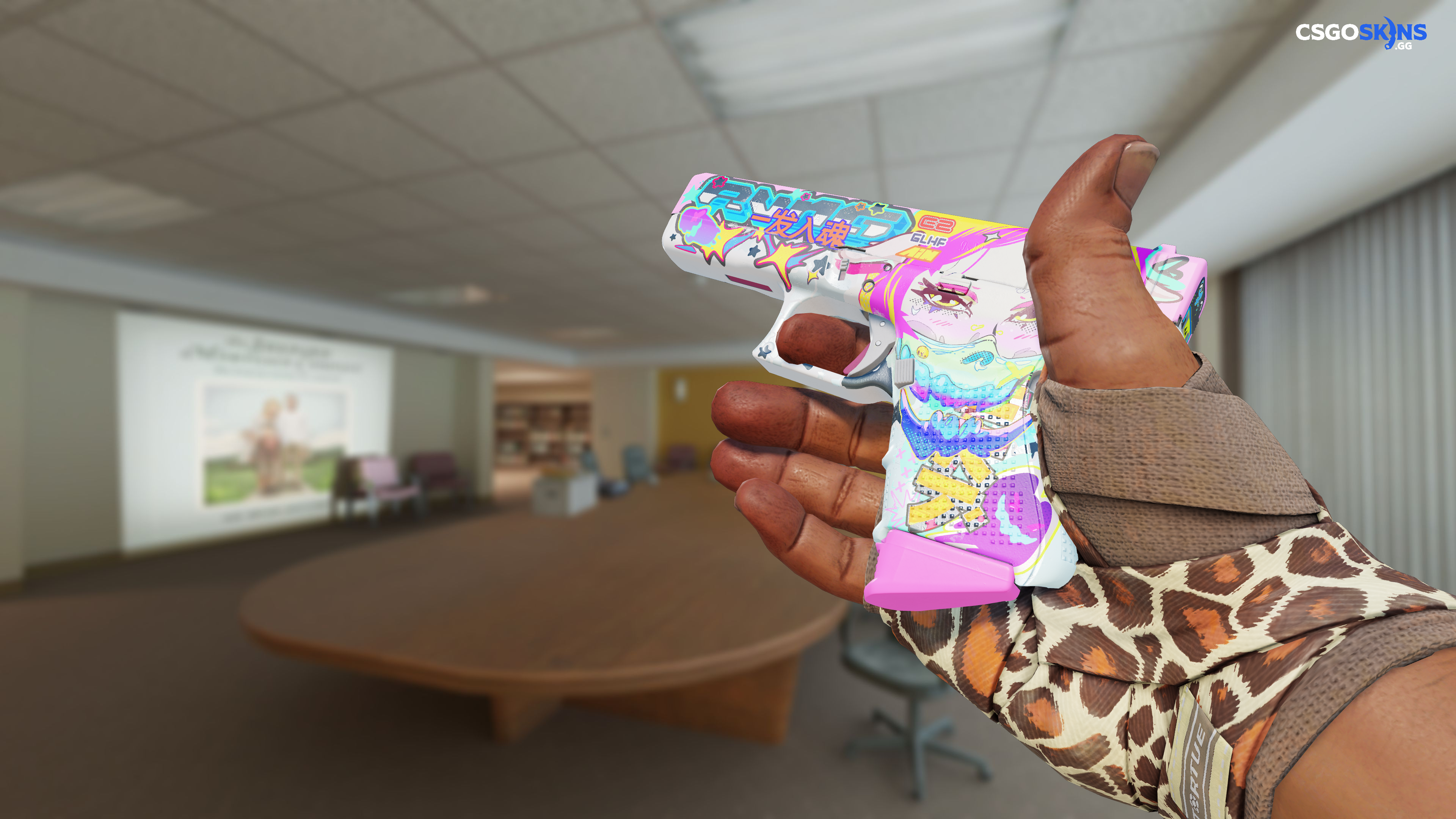 This Glock-18 has been painted in a "Gunsmith" style, with the Fully Tuned finish. This style uses a combination of patina and custom paint styles. The primary color of this skin is composed of a pink tint. Different pattern indexes have no effect on the Fully Tuned finish. The skin uses the new CS2 model.