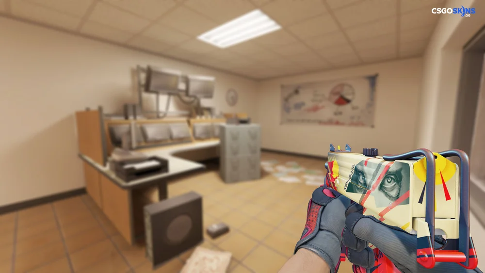 This MAC-10 has been painted in a "Custom Paint Job" style, with the Propaganda finish. This style enables extremely customized looks in a full range of colors. The primary color of this skin is composed of a red tint. Different pattern indexes have no effect on the Propaganda finish. The skin uses the old legacy model.