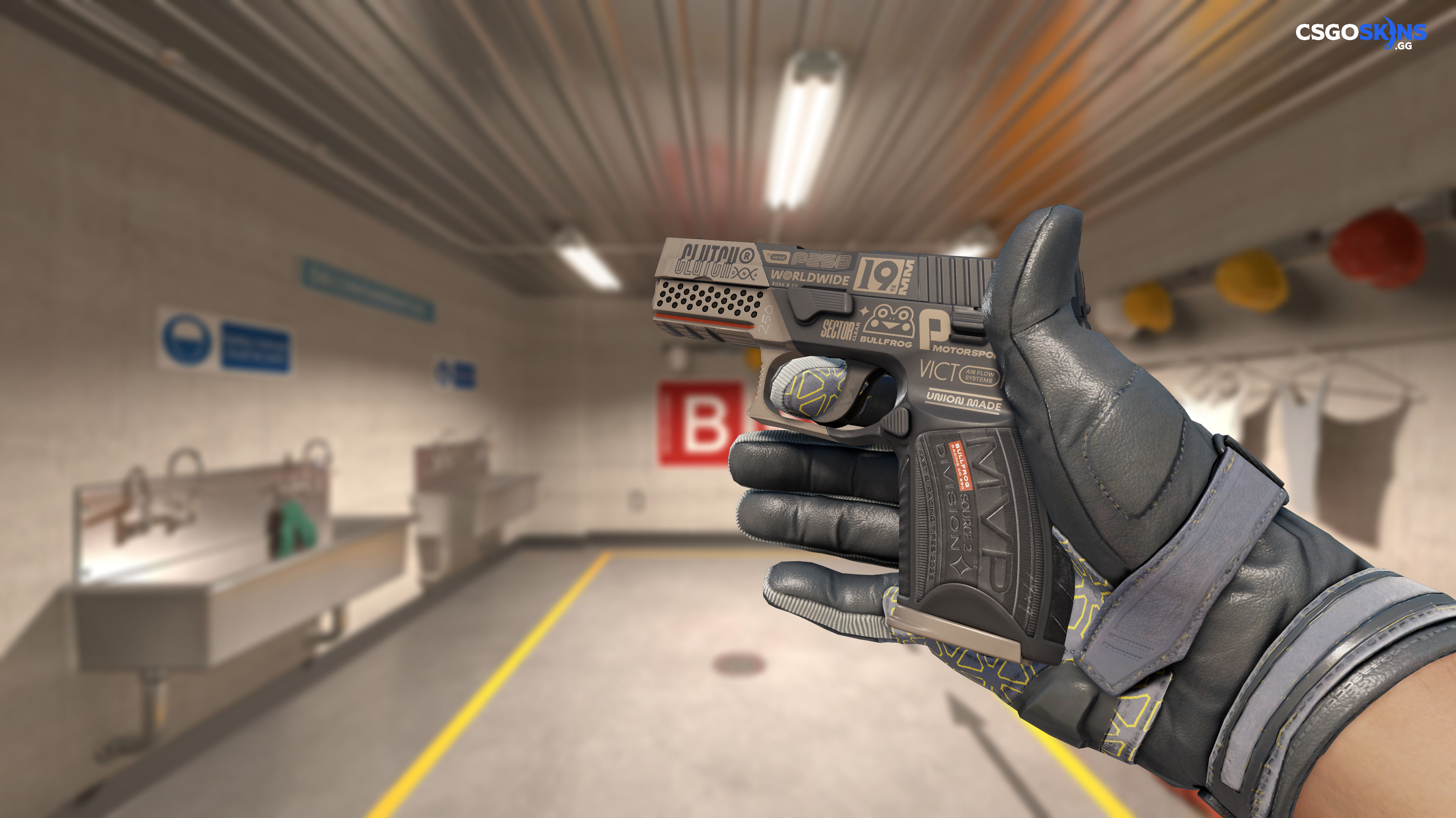 This P250 has been painted in a "Gunsmith" style, with the Bullfrog finish. This style uses a combination of patina and custom paint styles. That said, this particular skin has been mostly painted in shades of gray. Different pattern indexes have no effect on the Bullfrog finish. The skin uses the new CS2 model.