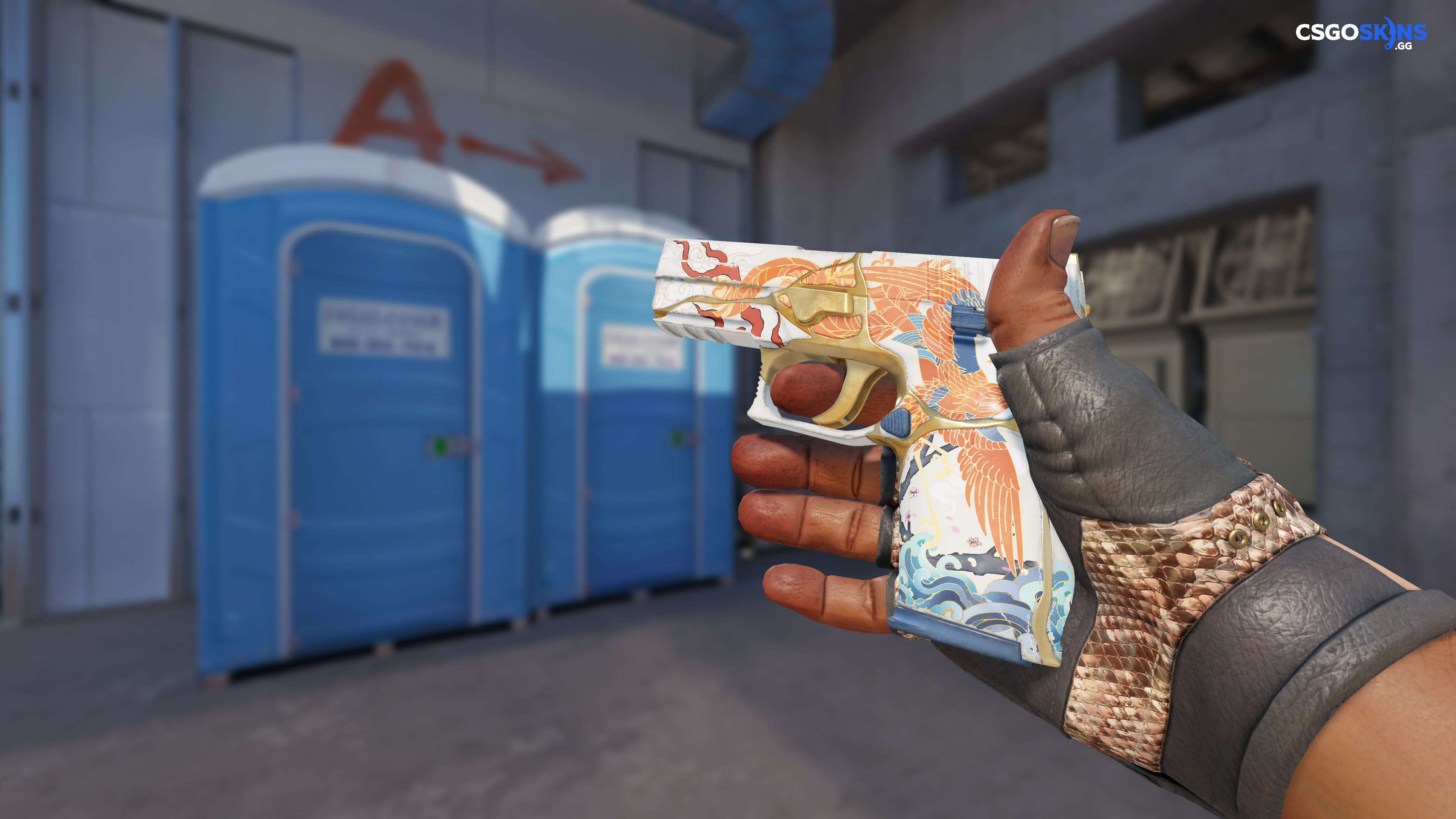 A low-recoil firearm with a high rate of fire, the P250 is a relatively inexpensive choice against armored opponents. A striking orange bird and gold accents have been custom painted over an ivory-colored base. Like those fancy dinner plates, this weapon's only used for special occasions